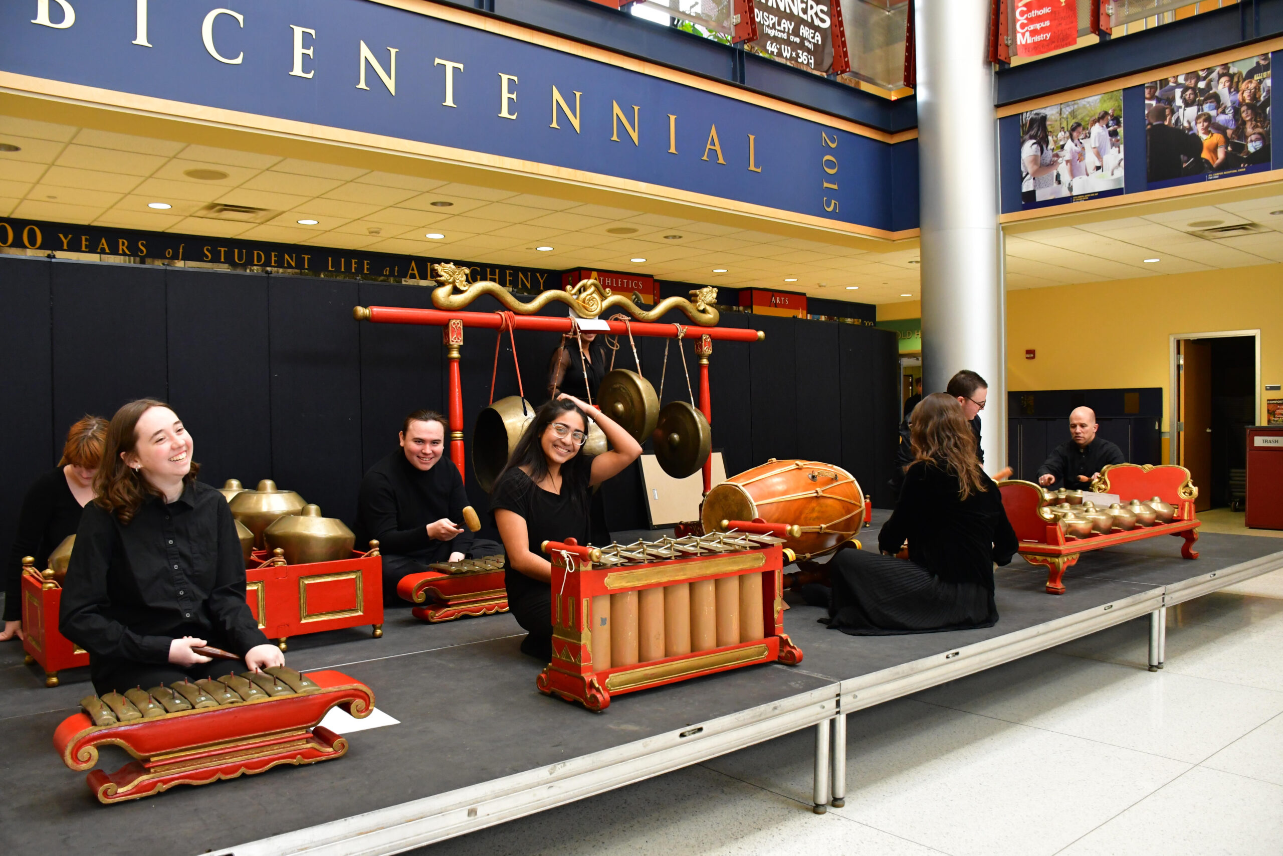 Gamelan is a type of traditional music from Indonesia that is built largely on tuned bronze percussion and uses unique rhythmic and melodic systems. Though an ancient tradition with well established values and practices, gamelan is still vital, under constant renewal and expansion. This ensemble is open to all Allegheny College students and community members. Although no experience is necessary, an audition is required to assess best placement within the ensemble.