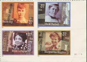 The U.S. Postal Service commemorated Tarbell on September 12, 2002 in a set of Four Women in Journalism stamps that were issued in recognition of the talents of Ida Tarbell, Marguerite Higgins, Ethel Payne and Nellie Bly. The collage on the Ida M. Tarbell stamp features a black-and-white photograph of Tarbell. To the right of the photograph is a portion of the headline “The History of the Standard Oil Company,” as well as a portion of the McClure’s Magazine header, both from page 3 of the magazine’s November 1902 issue.